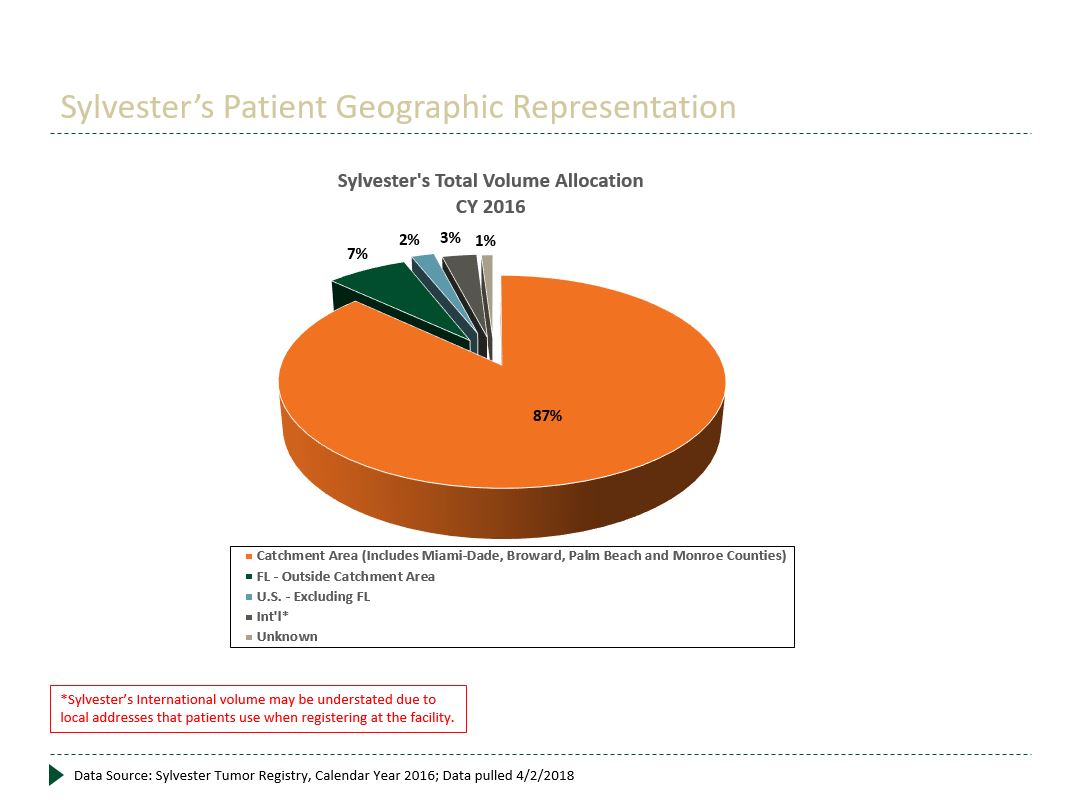 Sylvester tiene pacientes internacionales que provienen de un total de 84 países, con los mayores volúmenes de las Bahamas, Ecuador, Trinidad y Tobago y Venezuela.
