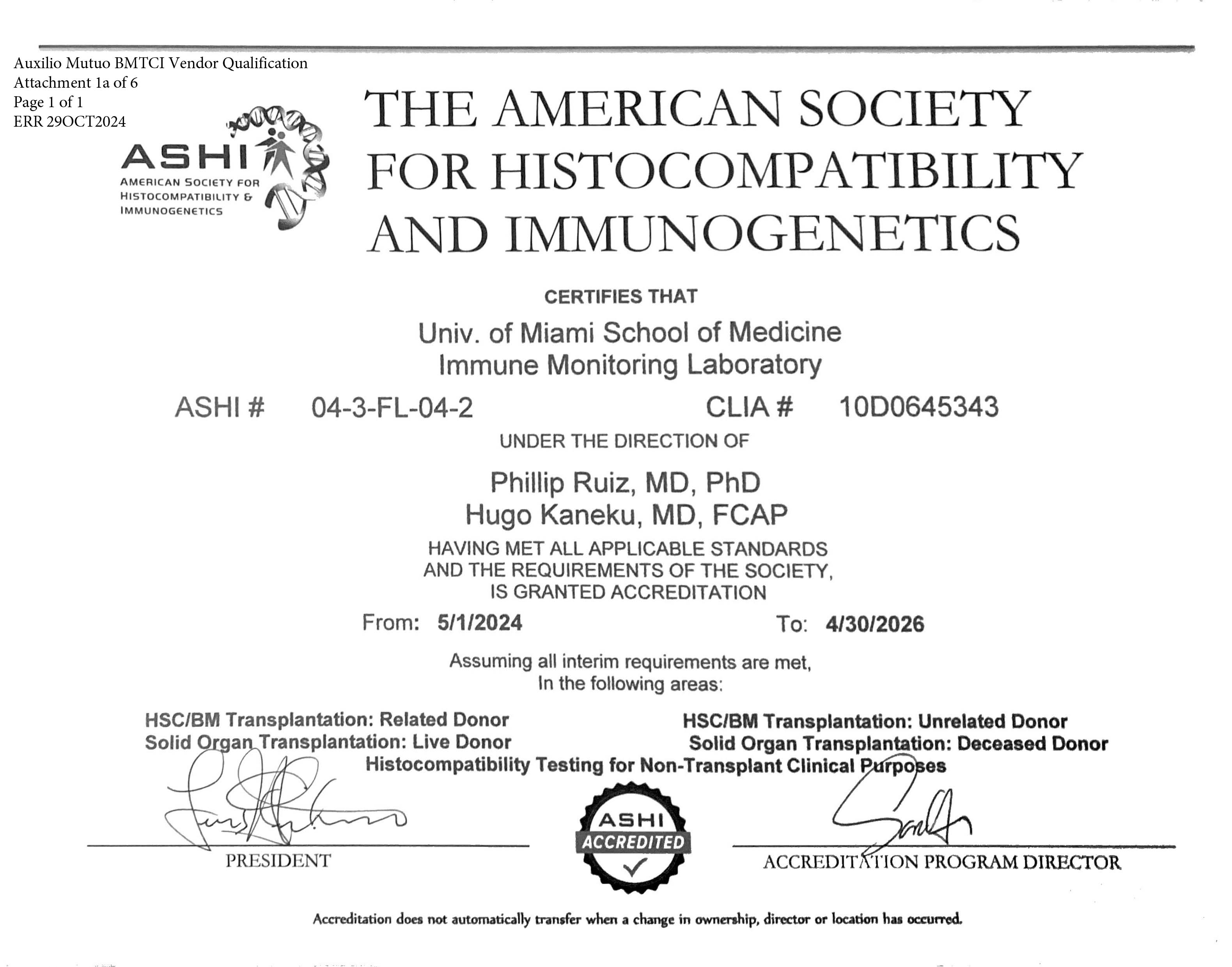 Immunology and Histocompatibility Laboratory